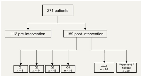 p = 0.0736) nor in in-hospital mortality (0.89% pre-intervention versus 2.52% post-intervention,