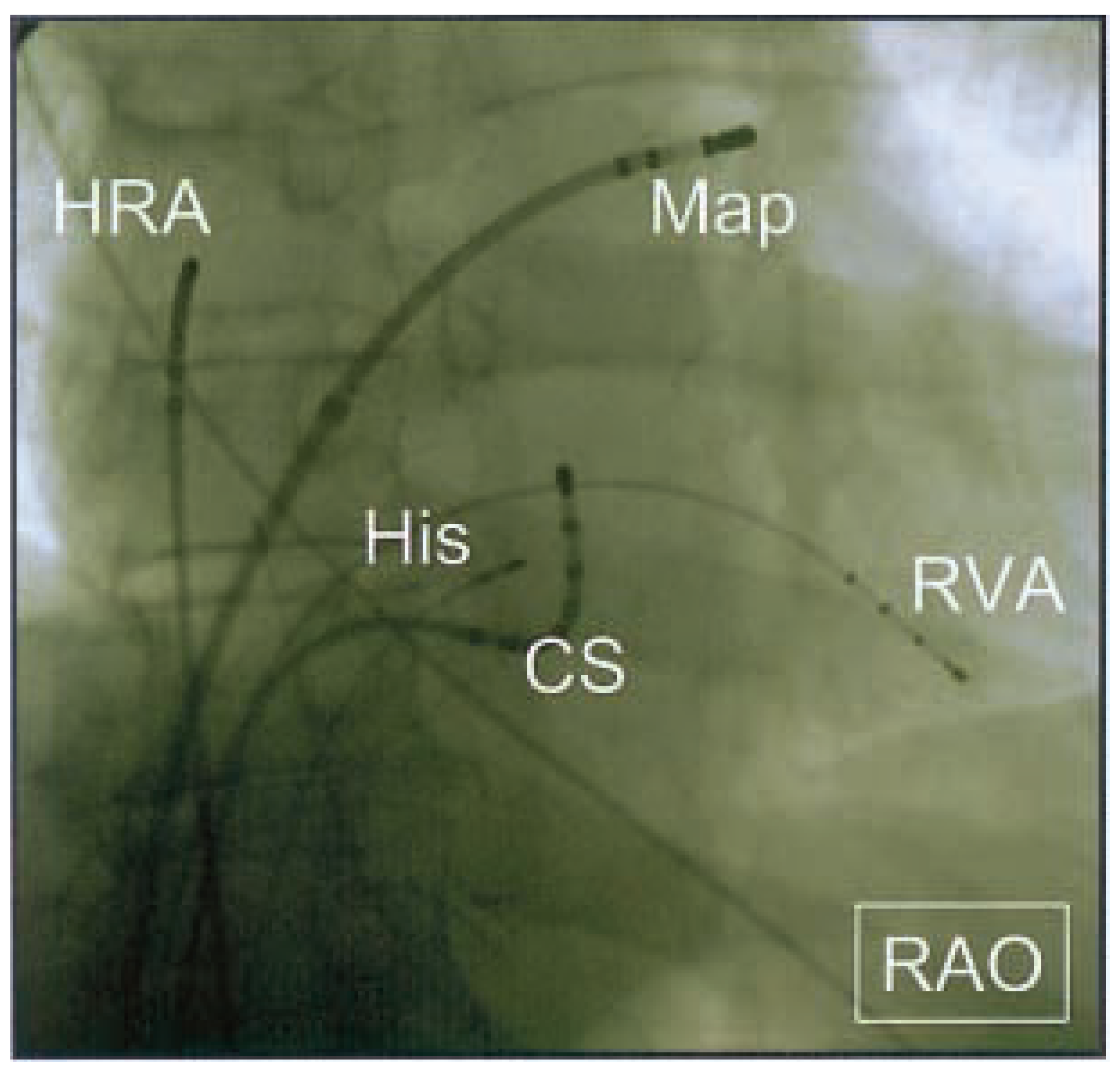 Es wurde eine elektrophysiologische Untersuchung durchgeführt. Nach transseptaler Punktion wurde mit Hilfe des elektromagne tischen Mapping-Systems Carto ein Aktivierungsmapping des linken Vorhofes durchgeführt (