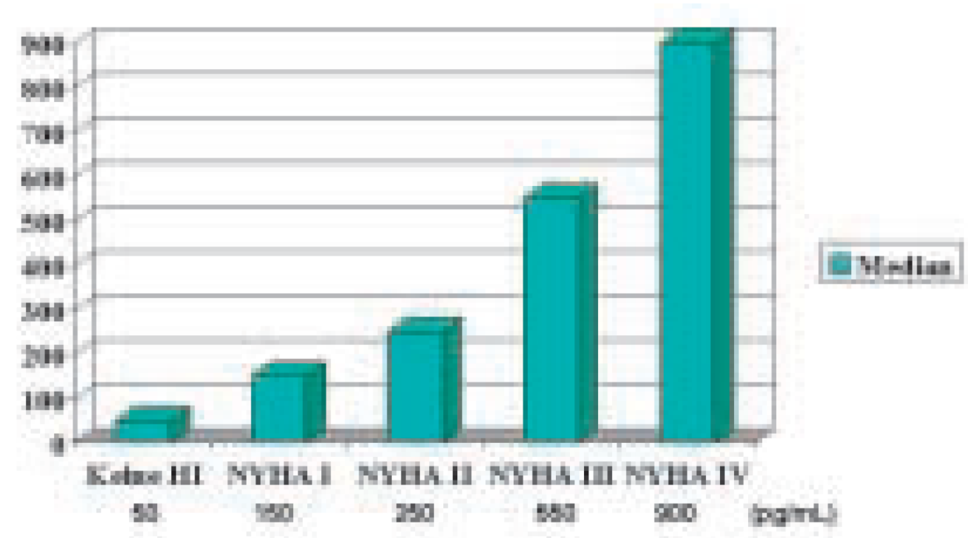 - Nagaya, N.; Nishikimi, T.; Uematsu, M.; Satoh, T.; Oya, H.; Kyotani, S.; et al. Plasma brain natriuretic peptide as a prognostic indicator in patients with primary pulmonary hypertension. Circulation 2000, 102, 865–70. [Google Scholar] [CrossRef] [PubMed]
