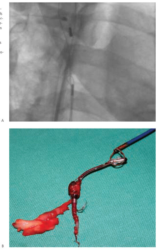 This article gives an overview on the practical management of device infections of chronically implanted pacemakers and implantable cardioverter- defibrillators. The main feature of such infections is the fact that the implanted materials have direct contact with the bloodstream, and therefore, may rapidly progress to systemic infection with serious septic complications. Apart from aggressive antibiotic treatment, in general, the infected material has to be explanted. Therefore, it is helpful to differentiate between the isolated pocket infection with the option of local surgical revision under preservation of the implanted leads and the systemic infection with the necessity of complete removal of all implanted materials using either the lead-extraction technique or open heart surgery. Full article