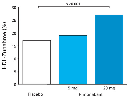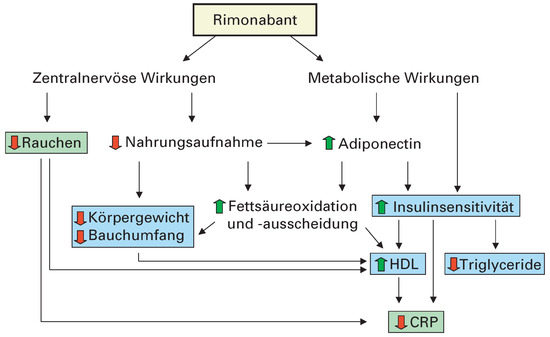 Treatment of lifestyle risk factors such as and smoking is difficult. These risk factors play important roles in cardiovascular disease. Current therapeutic strategies only have minor impact on associated metabolic changes such as low HDL cholesterol and insulin resistance. Rimonabant is a novel compound of the class of the cannabinoid receptor antagonists blocking CB1 receptors. Clinical studies demonstrate its efficacy in the treatment of obese patients. Several clinical studies show a consistent weight reduction of around 7 kg with rimonabant which is maintained over the followup period of two years. Improved lipid profile (increased HDL cholesterol, +25%) and the reduction of inflammatory markers promise interesting results in upcoming morbidity and mortality trials. Besides, rimonabant is helpful in smoking cessation. The proportion of patients free from smoking was almost doubled by rimonabant (28% vs. 16% in the placebo group). Weight increase was avoided in rimonabant- treated patients whereas those in the placebo group slightly gained weight. Full article