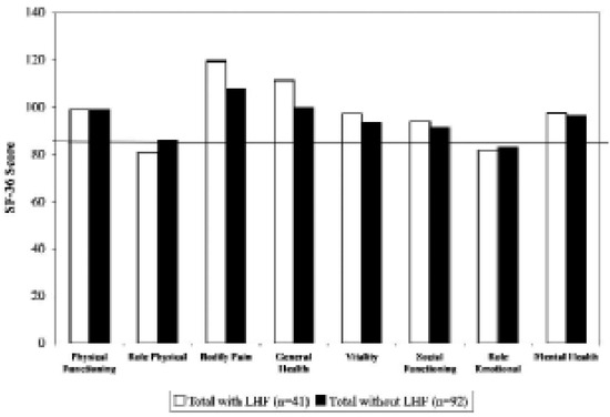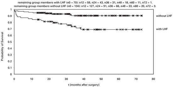 Objective: In patients scheduled for mitral valve surgery, preoperative left heart failure may reflect the degree of mitral valve disease. We assessed the incidence of left heart failure in patients who underwent mitral valve surgery and analysed the impact on mid-term outcome and quality of life in these patients. Methods: The data of 204 consecutive patients who underwent mitral valve surgery at our institution were analysed. Seventy (34.3%) had a history of preoperative left heart failure. Patient’s characteristics and mid-term outcome were analysed. Quality of life was assessed by using the SF-36 questionnaire. Results: Patients with a preoperative history of left heart failure were significantly older (67.0 vs 62.5 y; p <0.05), were more symptomatic at the time of surgery (NYHA-class 3.3 vs 2.4; p <0.05), had lower left ventricular ejection fraction (63 vs 52%; p <0.05) and had more enlarged left atria (57.6 vs 52.7 mm; p <0.05). In-hospital mortality (11.4 vs 3.0%; p <0.05) was higher and expected 5 year survival rate (68.9 vs 90.3%; p <0.05) was significantly lower in patients with preoperative left heart failure. After an average follow-up period of 37 ± 18 months no difference in quality of life was found between survivors of the two groups. Conclusions: A preoperative history of left heart failure adversely affects early and midterm outcome in patients undergoing mitral valve surgery. However, 36 months after surgery mortality tends to be similar in both groups and quality of life does not differ significantly between patients with or without history of heart failure and is similar to that obtained in a standard population. Full article