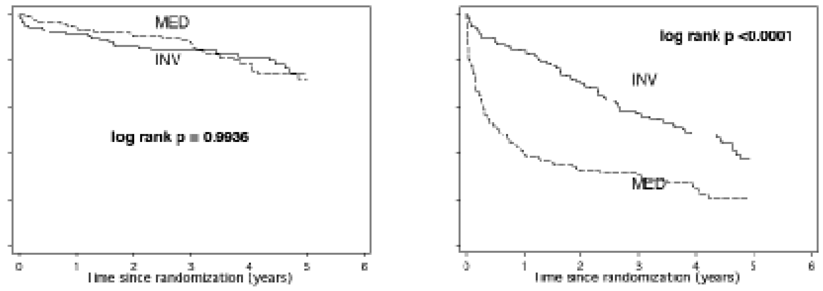 - Pfisterer, M.; Trial of Invasive versus Medical therapy in Elderly patients Investigators. Long-term outcome in elderly patients with chronic angina managed invasively versus by optimized medical therapy: Four-year follow-up of the randomized Trial of Invasive versus Medical therapy in Elderly patients (TIME). Circulation 2004, 110, 1213–1218. [Google Scholar] [CrossRef] [PubMed]