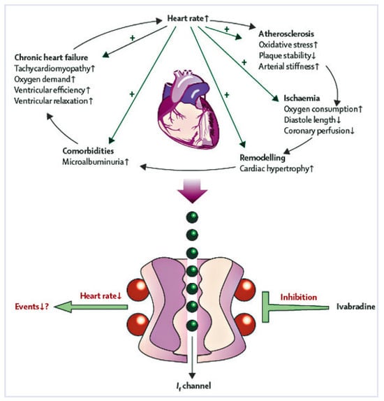 - Fox, K.; et al. Ivabradine for patients with stable coronary artery disease and left-ventricular systolic dysfunction (BEAUTIFUL): a randomised, double-blind, placebo-controlled trial. Lancet. 2008, 372, 807–816. [Google Scholar] [CrossRef] [PubMed]
