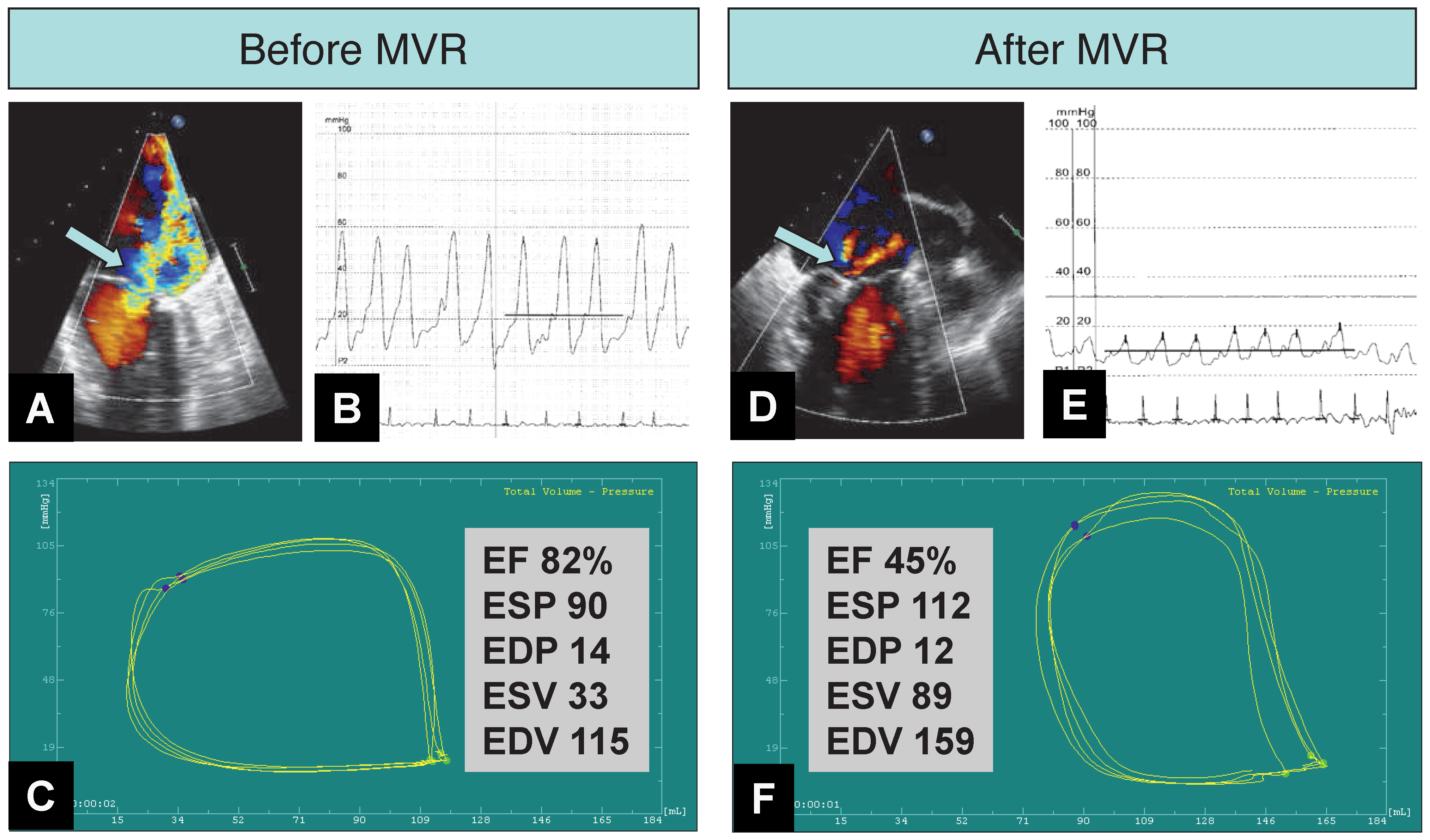 - Enriquez-Sarano, M.; Tajik, A.J.; Schaff, H.V.; et al. Echocardiographic pre- diction of left ventricular function after correction of mitral regurgitation: results and clinical implications. J Am Coll Cardiol 1994, 24, 1536–1543. [Google Scholar]