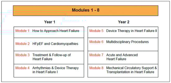 - McDonagh, T.A.; Gardner, R.S.; Lainscak, M.; Nielsen, O.W.; Parissis, J.; Filippatos, G.; et al. Heart failure association of the European society of cardiology specialist heart failure curriculum. Eur J Heart Fail 2014, 16, 151–162. [Google Scholar] [CrossRef] [PubMed]