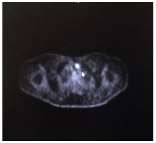 - Kroiss, A.; Uprimny, C.; Virgolini, I.J. Thyroid carcinoma detected by incidental (18)F-FDG uptake in a patient with progressive cerebellar syndrome. Endocrine 2016, 51, 199–200. [Google Scholar] [CrossRef] [PubMed]