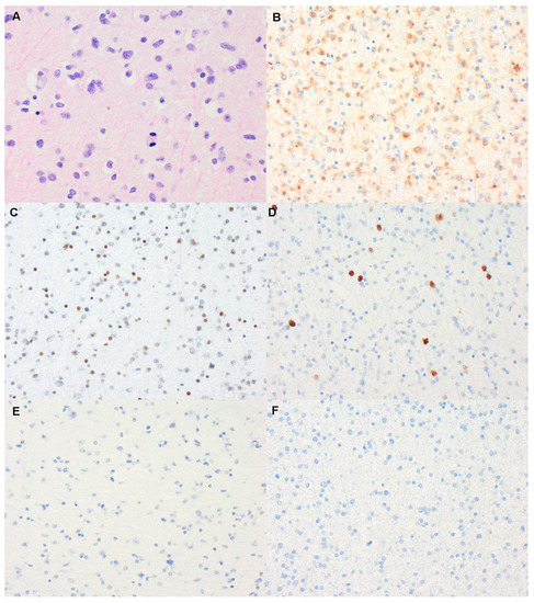 - Suwala, A.K.; Stichel, D.; Schrimpf, D.; Kloor, M.; Wefers, A.K.; Reinhardt, A.; Maas, S.L.N.; Kratz, C.P.; Schweizer, L.; Hasselblatt, M.; et al. Primary mismatch repair deficient IDH-mutant astrocytoma (PMMRDIA) is a distinct type with a poor prognosis. Acta Neuropathol. 2021, 141, 85–100. [Google Scholar] [CrossRef]