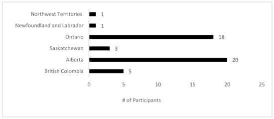 Over half of survey participants (n = 25; 52%) practice in community centers with an academic affiliation, while almost one-third (n = 14; 29%) reported practicing in an academic-only setting. The majority of participants indicated they held the title of Assistant Clinical Professor (n = 13; 27%), Associate Clinical Professor (n = 12; 25%), or Clinical Lecturer (n = 13; 27%). The median population of participants’ cities of practice was 800,000 (Range: 10,000–4,000,000). The majority of participants reported completing their medical training within Canada with 7 (16%) respondents indicating that had completed their training abroad.