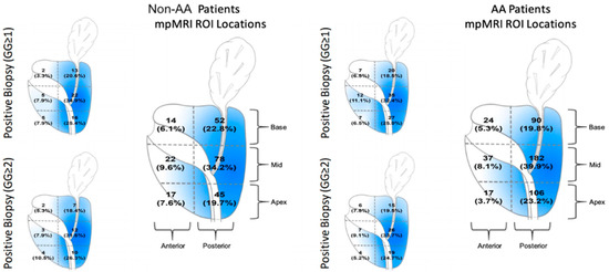 Our study is not without its limitations. First, this is a single institutional database, and any collective and unidentified error may be due to larger systemic procedures. Secondly, our cancer detection rate was lower than expected, while the focus of ongoing efforts for quality improvement at this rate appears substandard. However, despite limited success in identifying clinically significant cancer, both AA and non-AA cohorts likely indicated no variance in race. Furthermore, we believe this cohort, without dedicated fellowship-trained MRI prostate radiologists, may reflect a more accurate depiction of “real-life experience” in MRI fusion outside of centers of excellence with dedicated prostate MRI teams. Of note some location subsets had few patients, sometimes less than 5 per group. However, the overall comparison of importance to this study, anterior vs. posterior lobe, were comparable between racial groups.