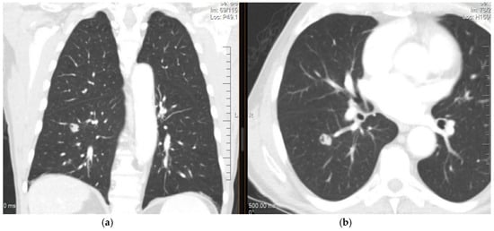 A chest X-ray is a low-sensitivity tool that cannot detect lesions of less than 1 cm []. In patients with extrathoracic cancer, detection of a new nodule on an X-ray has a 25% probability of indicating a metastatic lesion [].
