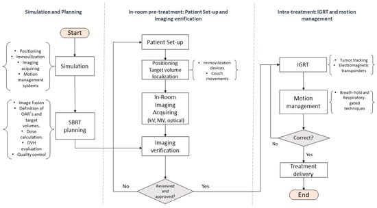 - Dahele, M.; Pearson, S.; Purdie, T.; Bissonnette, J.-P.; Franks, K.; Brade, A.; Cho, J.; Sun, A.; Hope, A.; Marshall, A.; et al. Practical Considerations Arising from the Implementation of Lung Stereotactic Body Radiation Therapy (SBRT) at a Comprehensive Cancer Center. J. Thorac. Oncol. 2008, 3, 1332–1341. [Google Scholar] [CrossRef]