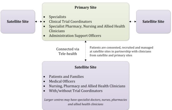 - Clinical Oncology Society of Australia. Australasian Tele-Trial Model: A National Guide for Implementation; Clinical Oncology Society of Australia: Sydney, Australia, 2016. [Google Scholar]