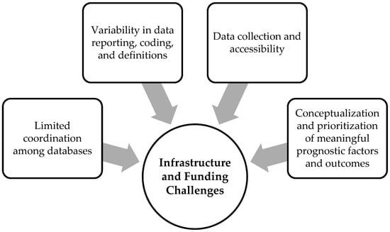 Four identified barriers related to infrastructure and funding challenges, including data collection and access; variability in data reporting, coding, and definitions; limited coordination among databases; and conceptualization and prioritization of meaningful prognostic factors and outcomes.
