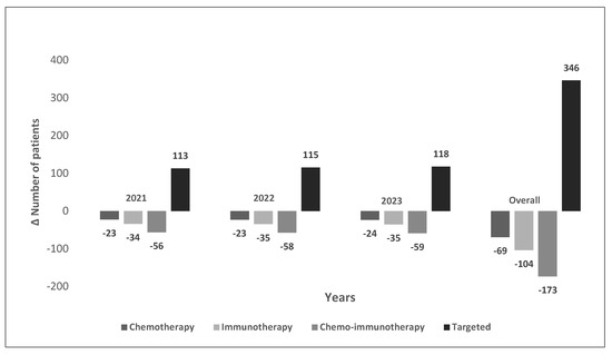 Change in the number of patients moving from non-targeted to targeted therapies.