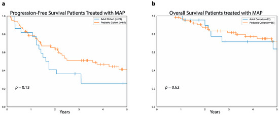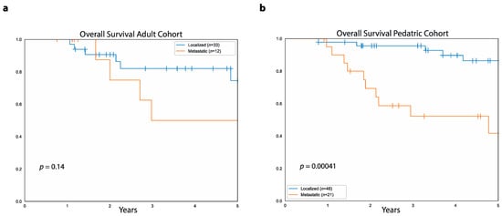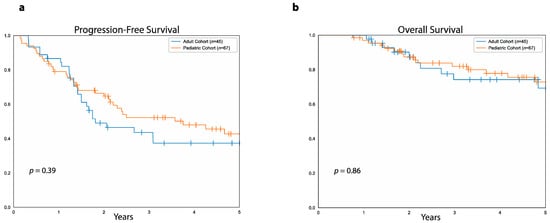 3.5. Survival Differences between Adult and Pediatric Cohort