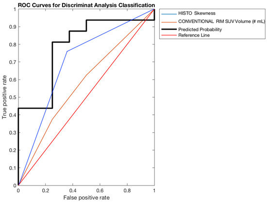 Briefly, (a) two different segmentation algorithms were applied for each PET study to identify the lesion in a user-independent way, as explained in Section 2.1, to avoid intra-observer and inter-observer dependencies concerning manual delineation; (b) the Local Image Feature Extraction (LifeX) software [34] was used to extract 44 radiomics features for each lesion, as explained in Section 2.2; (c) a mixed descriptive-inferential sequential approach [6] was used to identify a subset of relevant features that correlate with the outcome, as explained in Section 2.2.3; (d) a machine learning model was built to discriminate between tumor grades. A variety of different classifiers may be used for this last step (neural networks, random forest, support vector machines, and generalized linear models); in this study, the supervised discriminant analysis classification algorithm was used, as explained in Section 2.2.4. In the following, a detailed discussion of the various steps is presented.