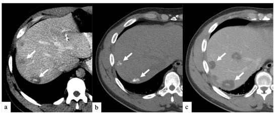 - Spina, J.C.; Hume, I.; Pelaez, A.; Peralta, O.; Quadrelli, M.; Monaco, R.G. Expected and Unexpected Imaging Findings after 90Y Transarterial Radioembolization for Liver Tumors. Radiogr. Rev. Publ. Radiol. Soc. N. Am. Inc 2019, 39, 578–595. [Google Scholar] [CrossRef]