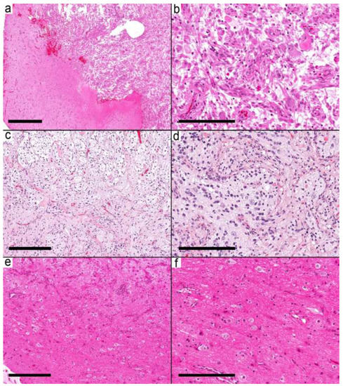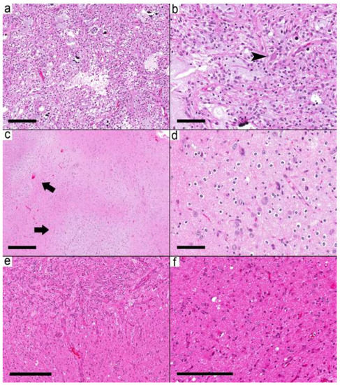 - Andreiuolo, F.; Lisner, T.; Zlocha, J.; Kramm, C.; Koch, A.; Bison, B.; Gareton, A.; Zanello, M.; Waha, A.; Varlet, P.; et al. H3F3A-G34R mutant high grade neuroepithelial neoplasms with glial and dysplastic ganglion cell components. Acta Neuropathol. Commun. 2019, 7, 78. [Google Scholar] [CrossRef] [PubMed]