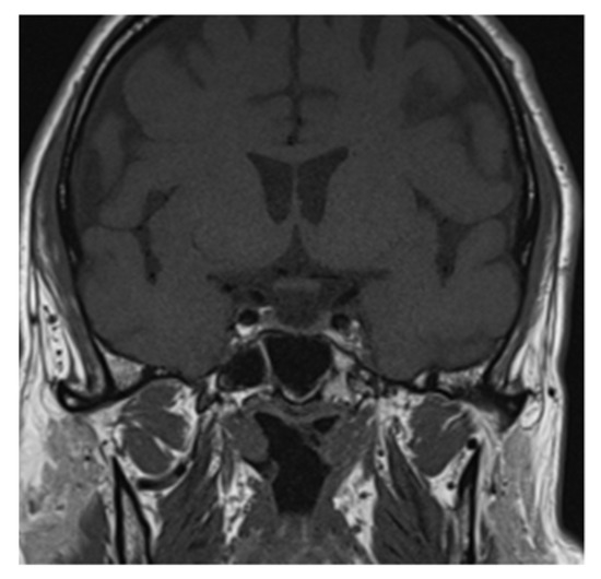 Partial “empty sellae syndrome” on brain MRI coronal section.