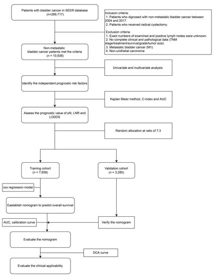 - Yang, Z.; Bai, Y.; Liu, M.; Hu, X.; Han, P. Development and validation of a prognostic nomogram for predicting cancer-specific survival after radical cystectomy in patients with bladder cancer:A population-based study. Cancer Med. 2020, 9, 9303–9314. [Google Scholar] [CrossRef] [PubMed]
