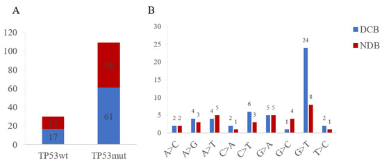 Clinical benefit (A) and nucleotide variation (B) of TP53wt and TP53mut cohorts. DCB, durable clinical benefit; NDB, no durable benefit.