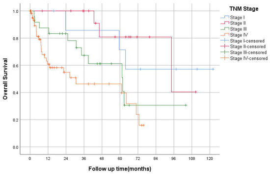 Kaplan–Meier curve of Overall Survival based on TNM Staging.