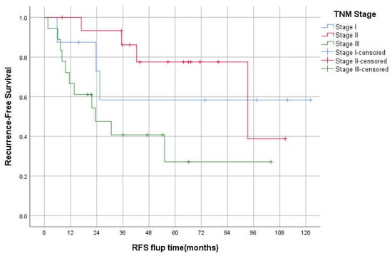 Kaplan–Meier curve of Recurrence-free survival for stages I-III.