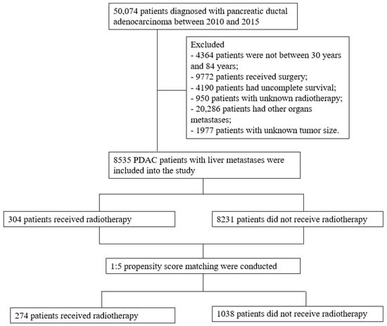 In this study, the researchers compared the survival of a large sample of PDAC patients with liver metastases who received or did not receive radiotherapy. The current study showed that PDAC patients who were treated with radiotherapy had improved CSS compared with patients who were not treated with radiotherapy. The survival benefit was more significant in patients with a tumor size greater than 4 cm.