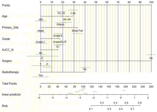 - Shi, M.; Zhou, B.; Yang, S.P. Nomograms for predicting overall survival and cancer-specific survival in young patients with pancreatic cancer in the US based on the SEER database. PeerJ 2020, 8, e8958. [Google Scholar] [CrossRef] [PubMed]