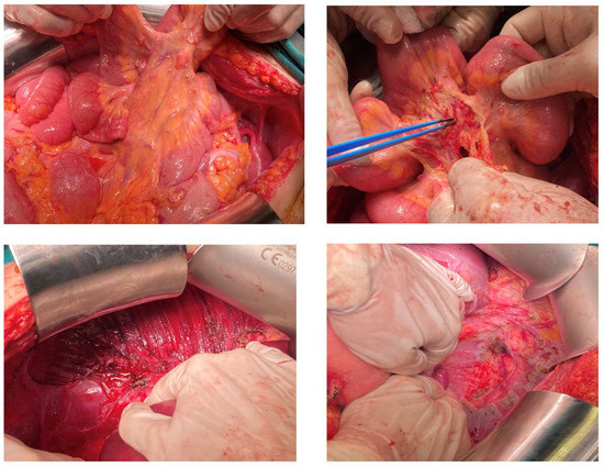 Dobi et al. described the involvement of the sigmoid colon by the disease, which was managed by rectosigmoid resection and anastomosis. In our own case, optimal debulking included left salpingo-oophorectomy; peritoneal resection of the pelvic, paracolic, bladder, and subdiaphragmatic peritoneum; omentectomy; and appendectomy. Macroscopically enlarged peritoneal lymph nodes were also removed (Figure 2). The final pathologic report confirmed the presence of neoplastic tissue with focal stromal invasion in all specimens, apart from the lymph nodes and the appendix. Our findings highlight the potential of extensive intraperitoneal dissemination of the disease, even in the subdiaphragmatic peritoneum, which was not previously addressed.