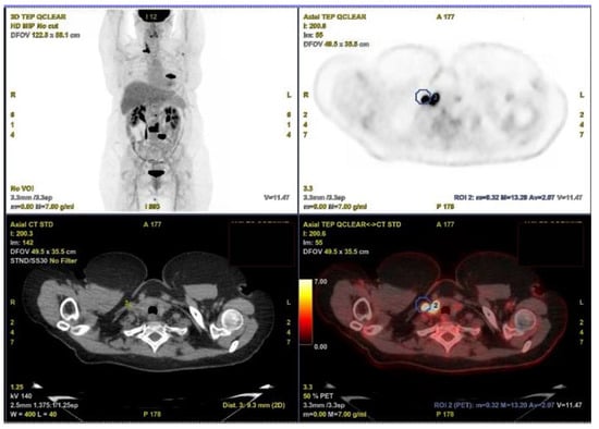 - Lee, E.Y.P.; Khong, P.-L. The value of 18F-FDG PET/contrast-enhanced CT in detection of tumor thrombus. Clin. Nucl. Med. 2013, 38, e60–e65. [Google Scholar] [CrossRef]