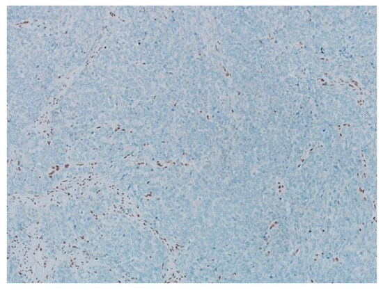 The pathology analysis of the surgical specimen. The stain INI-1—loss of expression (IHC, 100×).