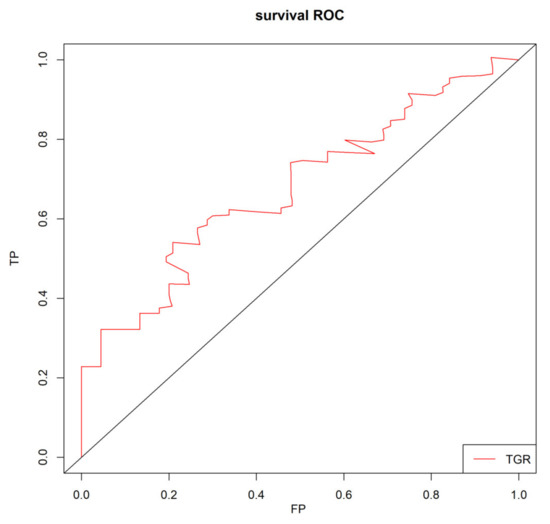 Time-dependent receiver operating characteristic curve (timeROC) for TGR in HHCC patients.