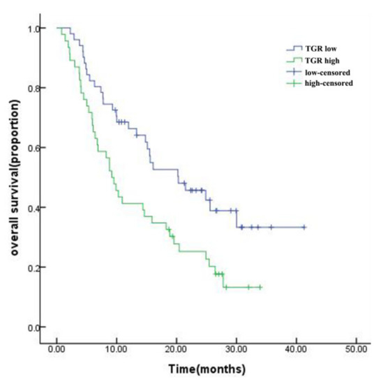 Kaplan–Meier survival curve for HHCC patients in the high-TGR and low-TGR groups.