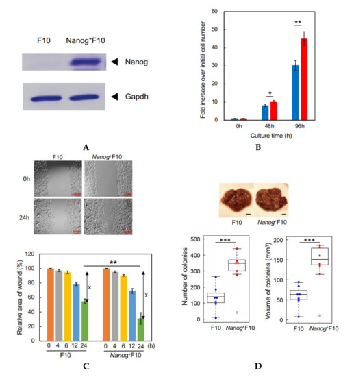3.1. Metastatic Potential of Nanog Overexpressing F10 Cells