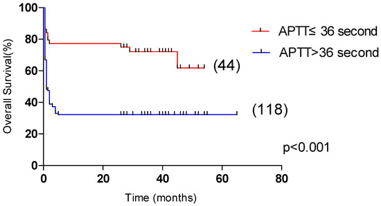 | APTT > 36 s (%) | 38(55.1) | 80(86.0) | <0.001 |