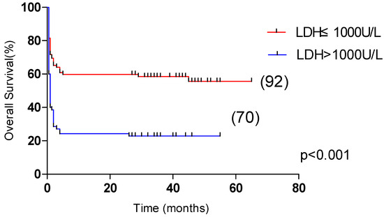 | LDH > 1000 U/L (%) | 16(23.2) | 54(58.1) | <0.001 |