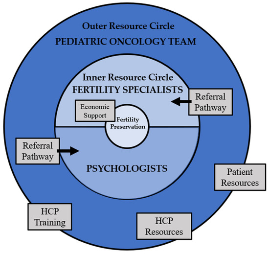 - Quinn, G.P.; Vadaparampil, S.T.; Gwede, C.K.; Reinecke, J.D.; Mason, T.M.; Silva, C. Developing a referral system for fertility preservation among patients with newly diagnosed cancer. J. Natl. Compr. Cancer Netw. 2011, 9, 1219–1225. [Google Scholar] [CrossRef]