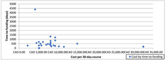The primary endpoint was the correlation between the publicly stated list price and time to funding (TTF) among the drugs that were funded in at least one province. TTF was defined as the time from Health Canada approval (Notice of Compliance (NOC)) to first decision to fund by a province or territory. List prices were standardized as the price for a 28-day course.