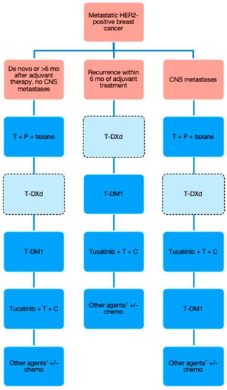 Finally, there is also intense research interest in identifying predictive biomarkers in HER2-positive metastatic breast cancer to enable a more personalized approach to treatment [15,39,45]. This topic is beyond the scope of this review.