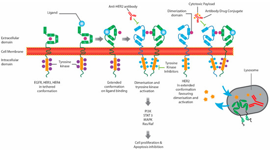 - Kunte, S.; Abraham, J.; Montero, A.J. Novel HER2-targeted therapies for HER2-positive metastatic breast cancer. Cancer 2020, 126, 4278–4288. [Google Scholar] [CrossRef]