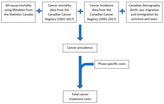 Two in five Canadians are expected to develop cancer in their lifetime [1]. Furthermore, cancer treatment costs have increased significantly over recent years, nearly doubling for some cancer sites [2]. The rising costs of cancer have been associated with medical debt and even bankruptcy among people in the United States [3]. In Canada, a country with universal public health care insurance, people with cancer still incur serious personal costs; thus, it is important to have a good understanding of the economic burden of cancer [4]. Cost-of-illness studies translate the adverse effects of cancer into dollars, which can be helpful to advocate for more treatment and support as well as provide input for decision making around prevention interventions. Existing published literature on the economic burden of cancer at the population level has generally focused on the burden from the public healthcare payer’s perspective (i.e., direct health system costs) [5]. However, this approach only covers one component of the total economic burden of cancer. It is also important to understand the economic burden from the perspective of patients and their families, which can be considerable [6,7,8]. Studies that measure the economic burden of cancer from the perspective of patients and their families usually measure limited categories of costs (e.g., out-of-pocket cost or lost earnings) for specific types of patients (e.g., long-term prostate cancer survivors or colorectal cancer patients receiving palliative care) [6,7,8]. Moreover, costs are often reported on a per-patient basis or per month, which may not be comparable to other estimates of the economic burden, which are reported as annual costs at the population level [9]. A thorough understanding of the economic burden of cancer will help inform cancer-related policies intended to support cancer patients and their caregivers. The objective of this study was to provide a comprehensive estimate of the economic burden of cancer in Canada from a societal perspective (i.e., the perspective of the health care system and patients and their families) using a cancer microsimulation model and published literature.
