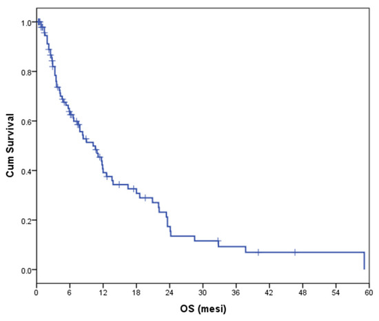 Regarding molecular characterization, in the present study, methylated patients showed a gain in OS over non-methylated patients but without statistical significance; it could be due to limited sample size with several missing data. Particularly in the multivariate analysis for OS, MGMT status had a strong tendency towards statistical significance, suggesting its role as an independent prognostic indicator, as shown in other studies [10,15].