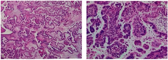- Rutgers, J.L.; Scully, R.E. Ovarian Mixed-Epithelial Papillary Cystadenomas of Borderline Malignancy of Mullerian Type. A Clinicopathologic Analysis. Cancer 1988, 61, 546–554. [Google Scholar] [CrossRef]