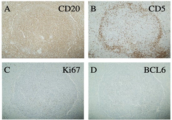 - Thieblemont, C.; Felman, P.; Callet-Bauchu, E.; Traverse-Glehen, A.; Salles, G.; Coiffier, B.; Berger, F. Splenic marginal-zone lymphoma: A distinct clinical and pathological entity. Lancet Oncol. 2003, 4, 95–103. [Google Scholar] [CrossRef]