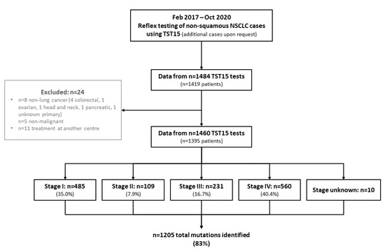 We investigated the impact of using a targeted NGS 15-gene panel (TruSight Tumor 15 [TST15], Illumina, San Diego, CA, USA) as part of the routine reflex testing for non-squamous NSCLC samples at a single institution.