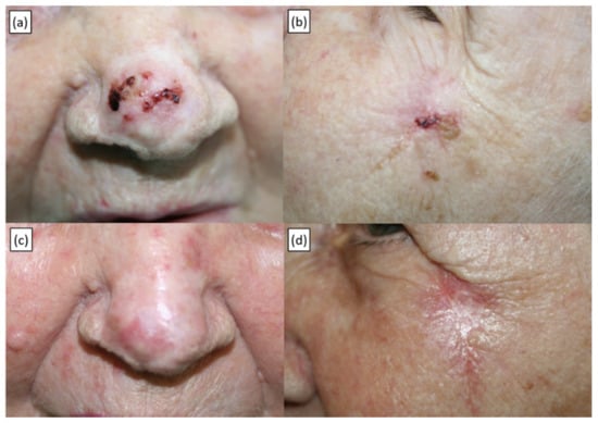 - Nasr, I.; McGrath, E.J.; Harwood, C.A.; Botting, J.; Buckley, P.; Budny, P.G.; Fairbrother, P.; Fife, K.; Gupta, G.; Hashme, H.; et al. British Association of Dermatologists guidelines for the management of adults with basal cell carcinoma 2021. Br. J. Dermatol. 2021, 185, 899–920. [Google Scholar] [CrossRef]