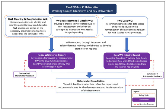 - Chan, K.K.W.; Dai, W.F.; Mercer, R.; Tadrous, M.; Evans, B.; Beca, J.; Isaranuwatchai, W.; Gavura, S.; Anderson, H.; Wall, A.; et al. Developing a Framework for Incorporating Real-World Evidence into Drug Funding Decisions CanREValue Collaboration Policy Working Groups: Response to Stakeholder Consultation for the Interim Policy Report 2019. Canadian Centre for Applied Research in Cancer Control (ARCC). Available online: https://cc-arcc.ca/wp-content/uploads/2020/10/CanREvalue-Interim-Policy-WG_Response-to-Stakeholder-Consultation_30Oct2020-FINAL.pdf (accessed on 5 January 2022).