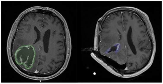 - Marko, N.F.; Weil, R.J.; Schroeder, J.L.; Lang, F.F.; Suki, D.; Sawaya, R.E. Extent of Resection of Glioblastoma Revisited: Personalized Survival Modeling Facilitates More Accurate Survival Prediction and Supports a Maximum-Safe-Resection Approach to Surgery. J. Clin. Oncol. 2014, 32, 774. [Google Scholar] [CrossRef]
